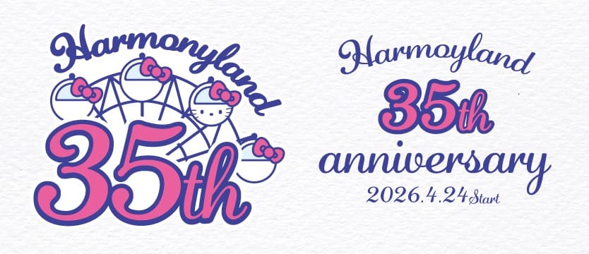 2026 年最矚目的活動。紀念標誌以園內地標「Wonder Panorama 大觀覽車」為設計元素。活動初日 4 月 24 日及 25 日舉行「Special High-Touch Greeting」,大量 Sanrio 角色會齊聚 Harmony Village 與入場者擊掌互動。4 月 26 日(開園紀念日當天)更會舉辦 35 周年特別典禮。後續還有地區聯動企劃等內容陸續公佈。