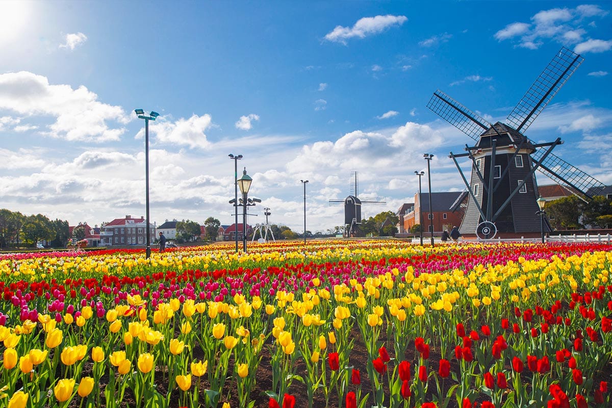 每年 2 月開始,長崎縣佐世保市的豪斯登堡就進入全年最漂亮的季節。這座以荷蘭街景為藍本建造的主題樂園,佔地約 152 萬平方米,面積相當於東京迪士尼度假區的 1.5 倍。風車、運河、紅磚建築配上整片鬱金香花田,不用飛歐洲都可以拍到彷如置身荷蘭的照片。2026 年的春季活動由 2 月初一直延續至初夏,適合想避開東京大阪人潮、深度遊九州的旅客。