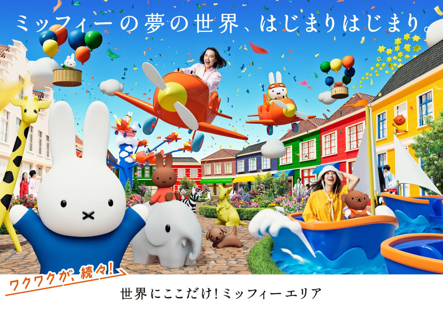 豪斯登堡在 2025 年開設了全球唯一的「ミッフィー・ワンダースクエア」(Miffy Wonder Square)主題區域,設有 Miffy 主題遊樂設施、限定商品店「nijntje ナインチェ」及主題餐廳。春季期間園內會有 Miffy 主題巡遊和季節限定周邊商品發售。